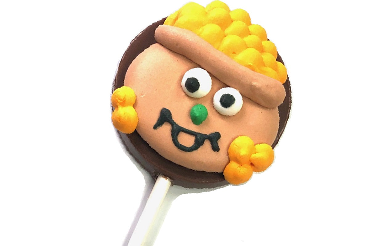Solid milk chocolate suckers topped with an adorable royal icing hat!